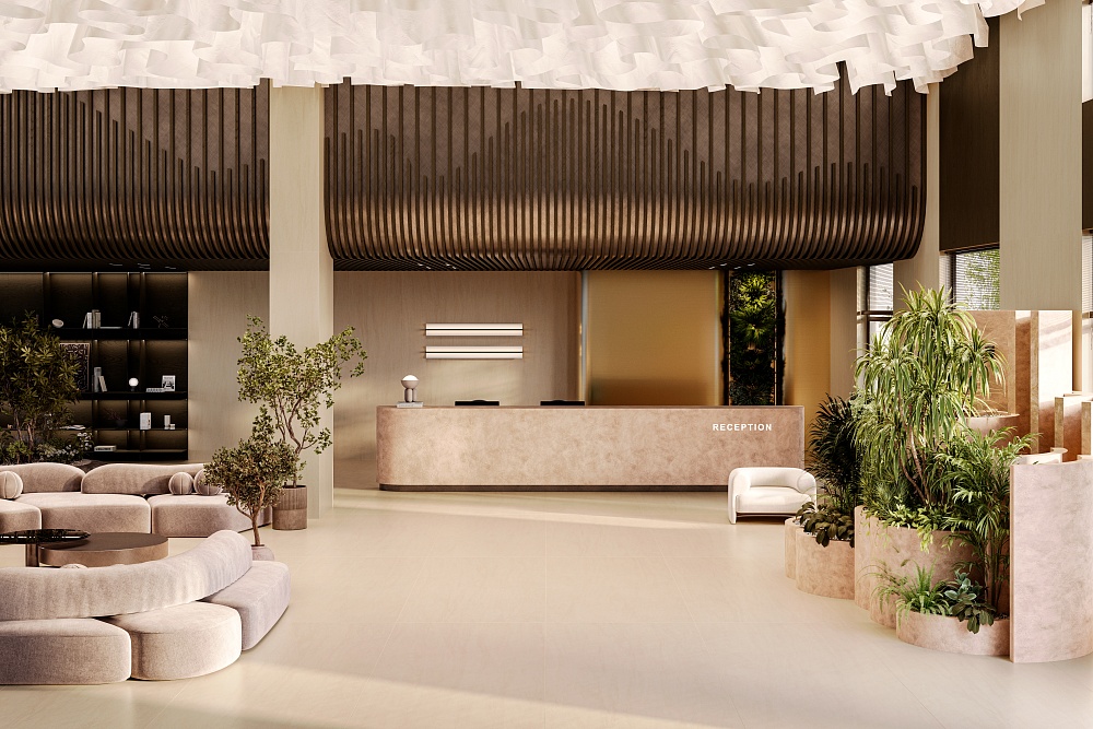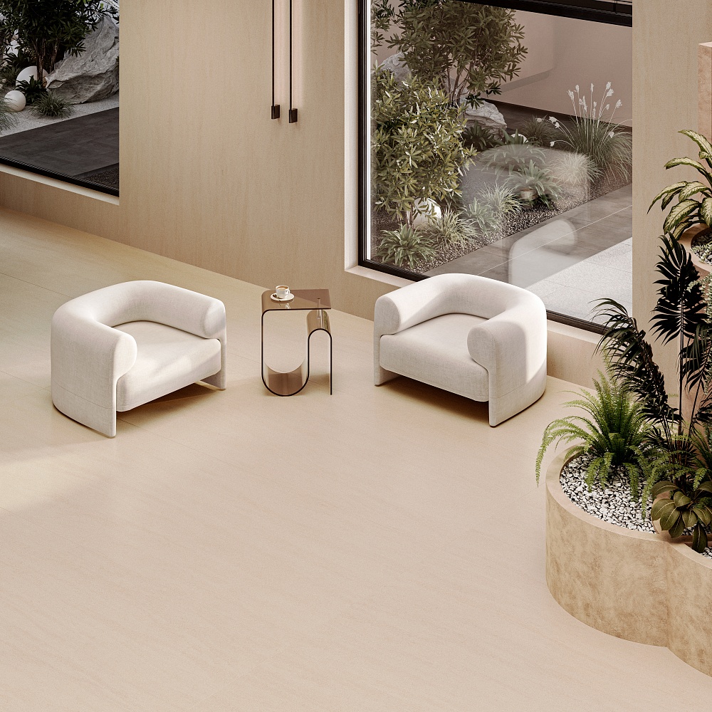 Тонкие силуэты ветвей деревьев сплетаются в причудливые формы, отражаясь на нежно бежевом Мока Крем. Вокруг гудят цикады, и ни один ветерок не позволяет себе нарушить безупречно ровную гладь бассейна.