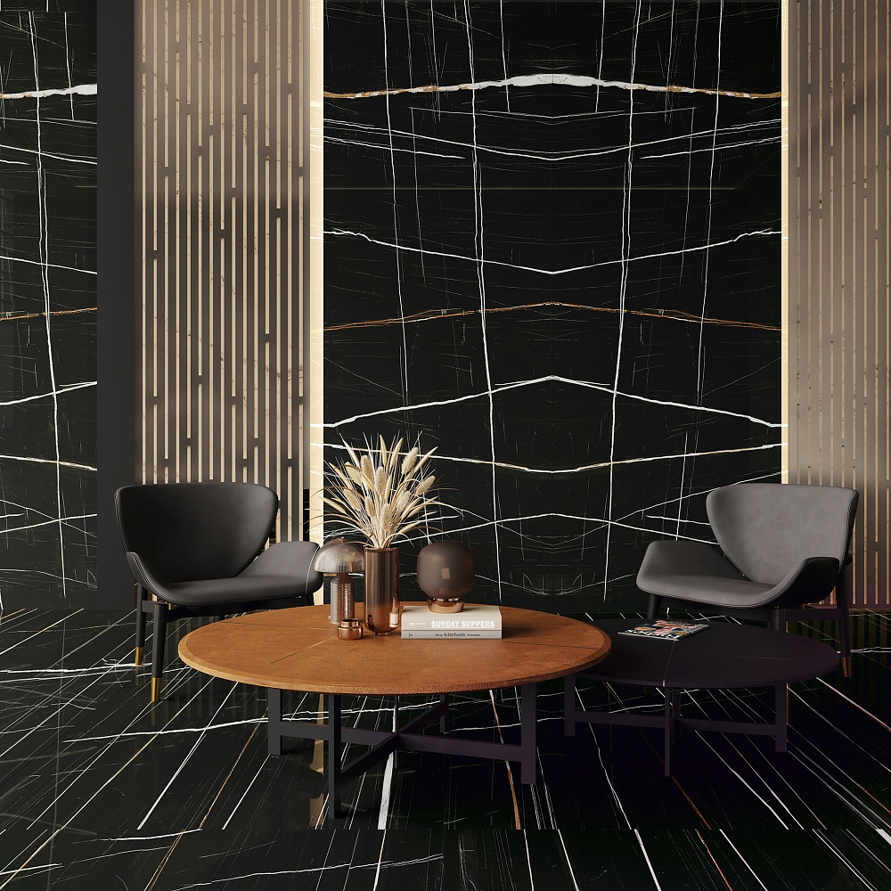 Чёрная с золотыми прожилками Сахара Блэк — бархатно-угольный свод над волнистыми барханами и мириады звезд, многократно повторенные в песчинках кварца. Это загадочная красота бескрайних просторов и гордая тишина, царящая над ними.