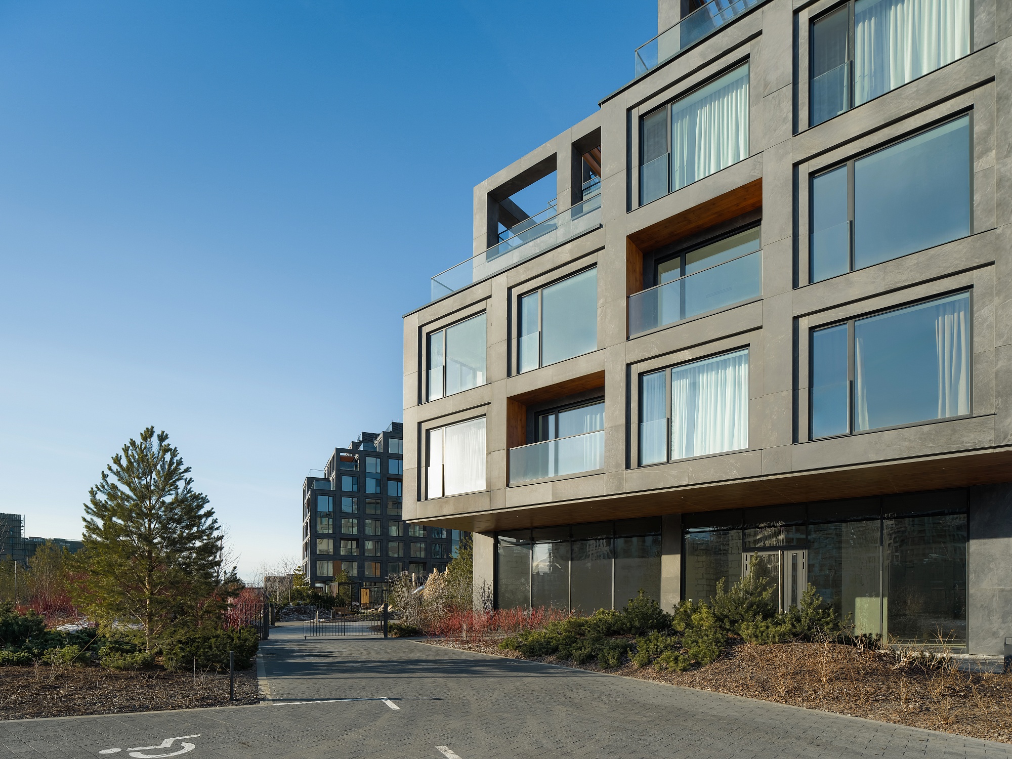 Крупноформатные плиты с матовой графитовой фактурой камня создают ощущение тишины, внутреннего покоя и связи с природой.